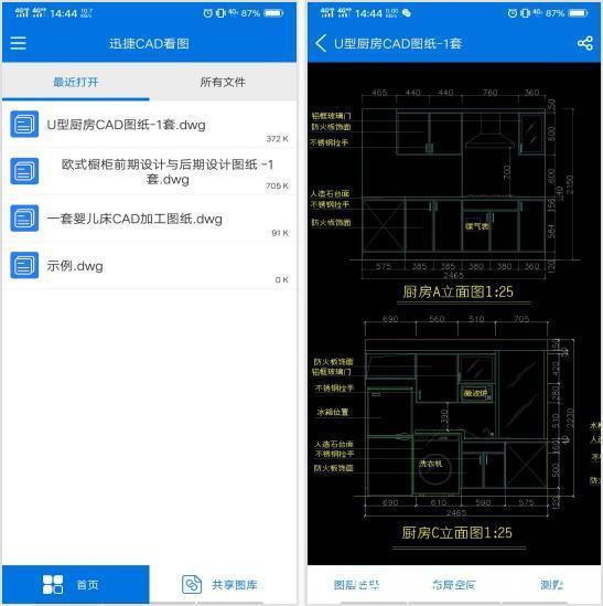 四、不断的练习 看图并不是那么简单,还需要我们的积累的丰富的经验。所以在平时休闲的时候,我们可以找些电气图纸结合着上边的理论来学习。对于打开dwg图纸你嫌电脑笨重,我们在手机上也可以轻松实现对图纸的浏览查看。 1、我们手机的应用商城或者第三方应用的搜索框内搜索迅捷CAD看图,找到对应的APP。